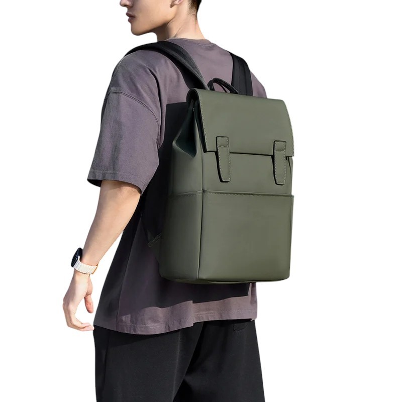 A férfi téglalap alakú hátizsák mindennapi városi használatra, munkába, iskolába és általános ügyintézésre lett tervezve. A 31 x 13 x 42 cm méretének köszönhetően elegendő helyet biztosít személyes tárgyak, dokumentumok és kisebb elektronikai eszközök számára, anélkül, hogy terjedelmesnek tűnne. A poliészter és szintetikus bőr kombináció modern megjelenést kölcsönöz a hátizsáknak, miközben megőrzi annak könnyedségét. A jellegzetes csattal záródó klapa hangsúlyozza a városi stílust és vizuális struktúrát ad a hátizsáknak. Az összes kialakítás célja, hogy a hátizsák elegánsnak tűnjön, de egyben alkalmas legyen a mindennapi terhelésre.
