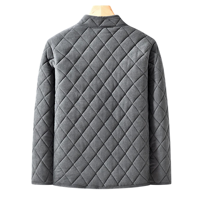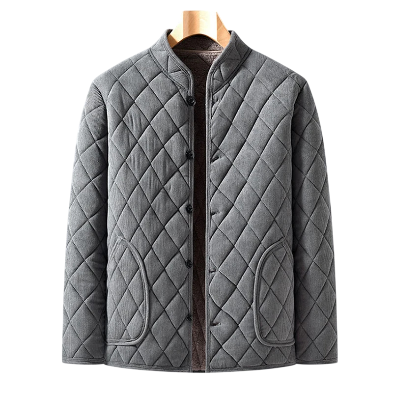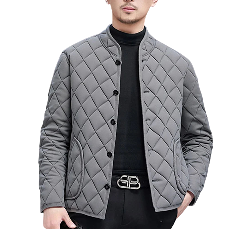 Férfi téli kabát Szürke szélálló kabát cipzárral Tartós poliészter Praktikus zsebek Meleg téli kivitel mindennapi viselethez a hideg időszakban