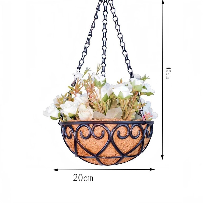 Függő virágcserép kókusz tál 20 cm Dekoratív virágcserép kókusz kinézettel kötélfüggesztéssel a növények számára