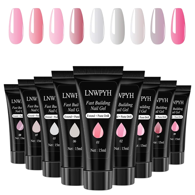 9 színű polygél széles palettát kínál a kreatív manikűr számára. A készlet tartalmaz