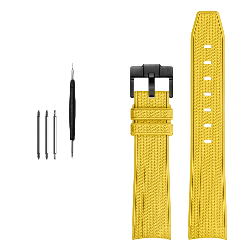 Ez a gumírozott szíj ideális választás prémium órák tulajdonosainak, akik az ellenállóság, a kényelem és a sportos stílus kombinációját keresik. Gumi anyag rendkívül rugalmas, kellemes tapintású és jól alkalmazkodik a csukló formájához, ami egész napos kényelmet biztosít. A 20 mm szélesség tökéletes kompatibilitást nyújt a Rolex, Omega, Omega × Swatch Joint MoonSwatch és Omega Constellation órákkal. A vízálló kivitel gondtalan használatot tesz lehetővé sportolás, kültéri tevékenységek vagy nehezebb körülmények között. A dizájn része egy elegáns fekete csat, amely biztosítja a szoros és megbízható rögzítést, miközben kiemeli a szíj modern megjelenését.