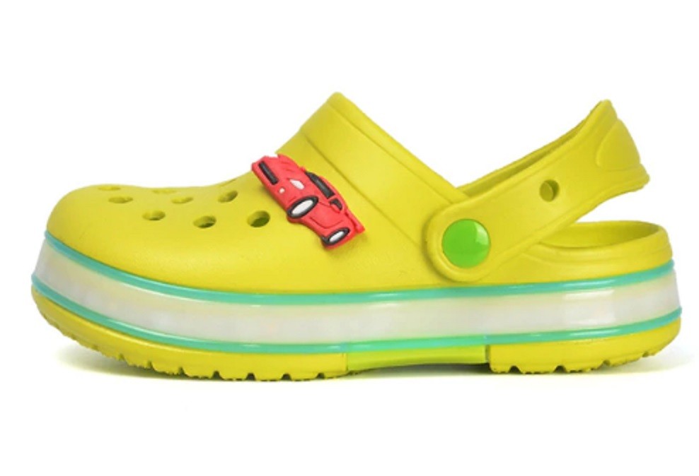 A papucs elfordítható hevederrel rendelkezik a sarok felett és villogó talppal rendelkezik.