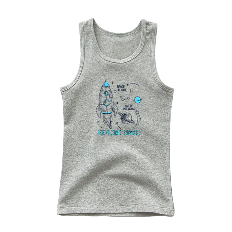 Gyerek pamut trikó űrhajó mintával Egyszínű ujjatlan póló O nyakkivágással Kényelmes nyári felső fiúknak és lányoknak