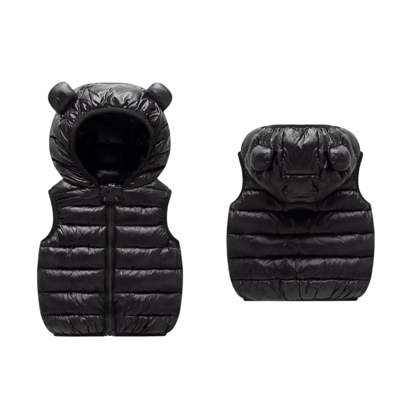 Cuki meleg gyerek mellény kapucnival és fülekkel. Könnyű, puha és meleg pamut mellény praktikus cipzárral, ideális őszi és téli viselethez. Teljes leírás