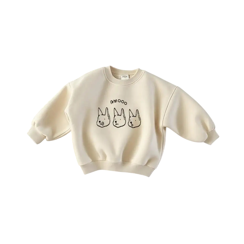 Stílusos gyerek pulóver aranyos kutyás mintával a mellkason. Puha pamut és poliészter anyagból készült, ideális tavaszi és őszi viselethez, különböző színekben. Teljes leírás