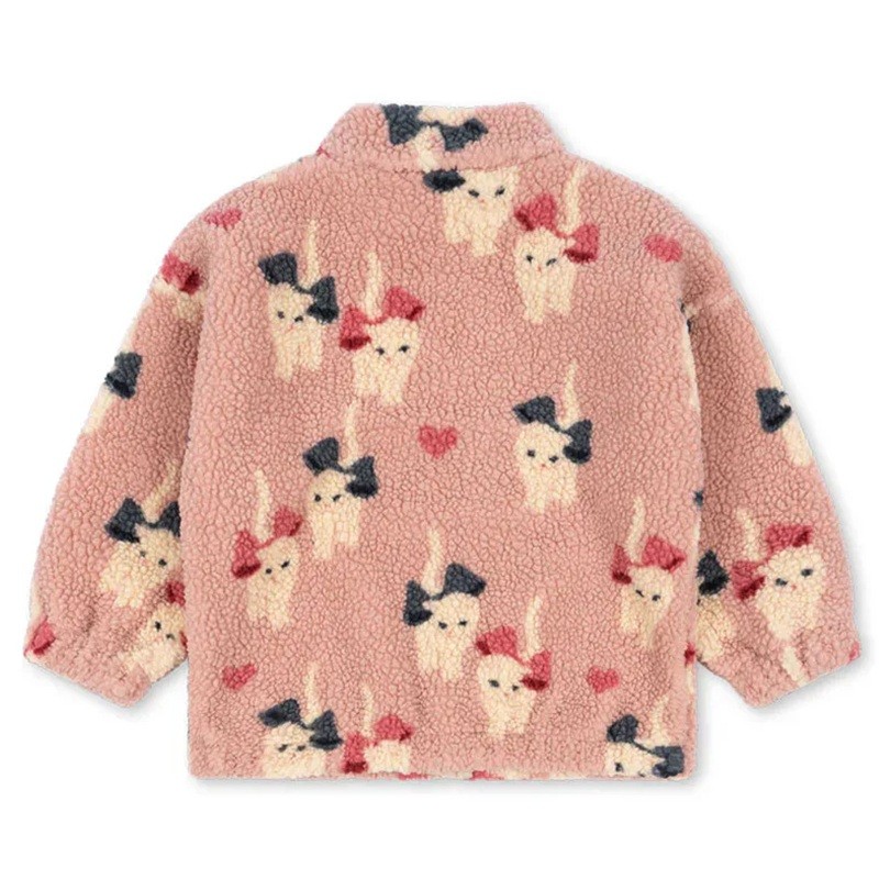 Aranyos rózsaszín gyerek téli kabát macska mintával, magas nyakkal és cipzárral. Plüss pamut-poliészter anyag biztosítja a meleget, kényelmet és téli komfortot. Teljes leírás