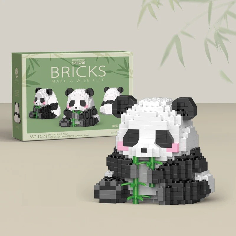 Gyermek aranyos építőjáték panda formájában, amely ül és rágcsál bambuszt, 449 darabos kirakós, gyermekek és gyűjtők számára is alkalmas
