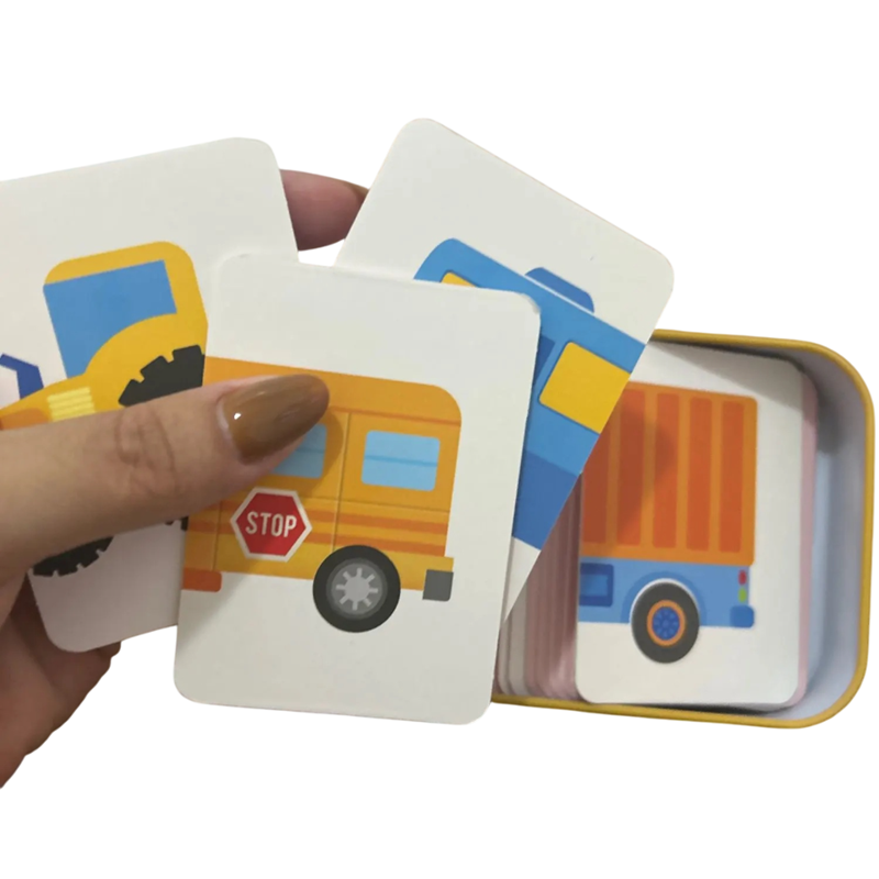 Gyermek kognitív kártyák közlekedési eszközökkel Fém doboz Illusztrált kártyák totyogóknak Memória és szókincs fejlesztése