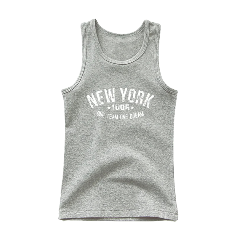 Gyermek pamut trikó New York mintával Egyszínű ujjatlan póló O nyakkivágással Stílusos nyári top fiúknak és lányoknak Különböző színekben