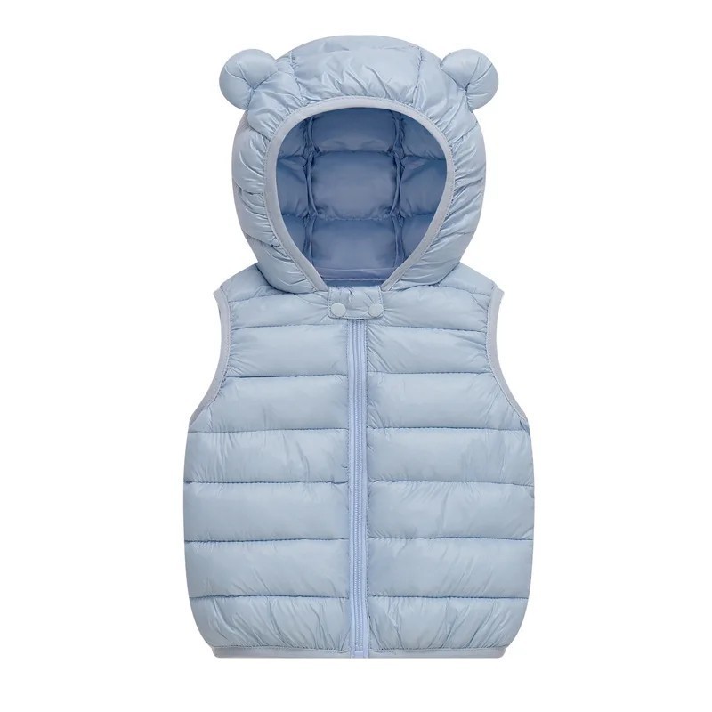 Gyerek pehelymellény kapucnival és fülekkel Őszi és téli meleg pamut dzseki kisgyermekeknek és lányoknak Egyszínű cipzáras mellény poliészterből és pamutból