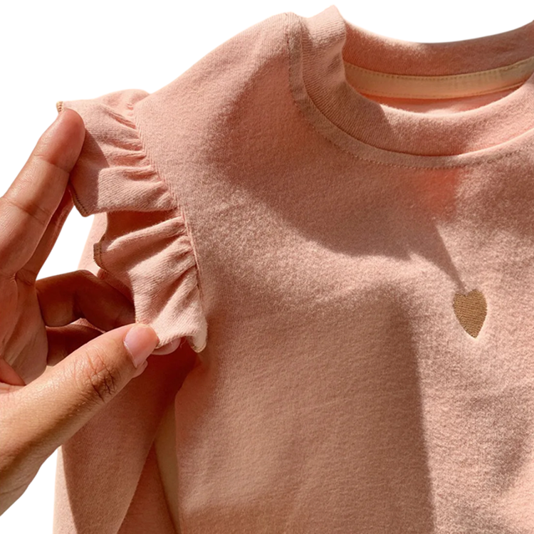 Gyermek pulóver szívvel a mellkason Pamut és poliészter Hosszú ujjú, ráncolt vállakkal Egyszínű felső O nyakkivágással Lányoknak Tavaszra és őszre