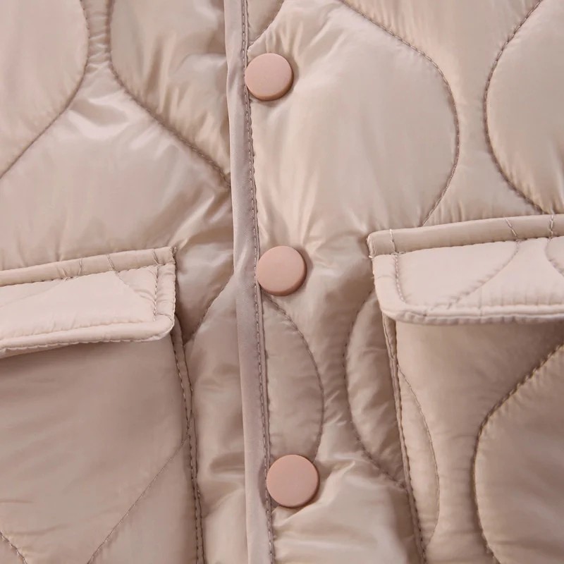 A kabát két funkcionális zsebbel van felszerelve, amelyek lehetővé teszik a gyerekek számára, hogy apróságokat tároljanak, vagy kezüket melegen tartsák a hideg napokon. A tartós poliészter felső réteg segít megvédeni a széltől, míg a pamut bélés állandó hőmérsékletet biztosít, és kellemes érzést nyújt a viselet során. A kabát általános szabása kényelmes, nem korlátozza a mozgást, és megfelelő iskolába járáshoz, valamint kültéri tevékenységekhez. A kiváló minőségű kidolgozásnak köszönhetően a kabát ellenáll a mindennapi használatnak és a mosásnak.