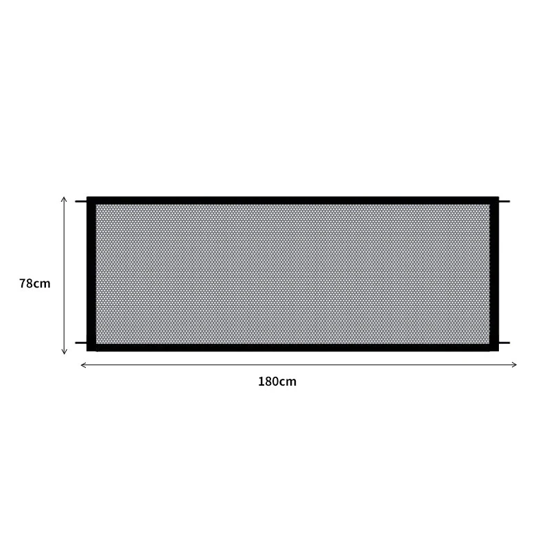 Ez a hálós kutyakaró ideális megoldás a biztonság biztosítására és a kiválasztott terek elválasztására az otthonában vagy lakásában. A 78 x 180 cm méretének köszönhetően elegendő nagy akadályt biztosít, amely megakadályozza, hogy kutyája olyan helyekre menjen, ahová nem szeretné, hogy belépjen. A telepítés gyors és fúrás nélkül történik – tartalmaz 4 öntapadó kampót, amelyeket a legtöbb sima felületre rögzíthet. A könnyű hálós szerkezet tartós, ugyanakkor könnyen áthelyezhető, így többször is használhatja különböző helyeken.