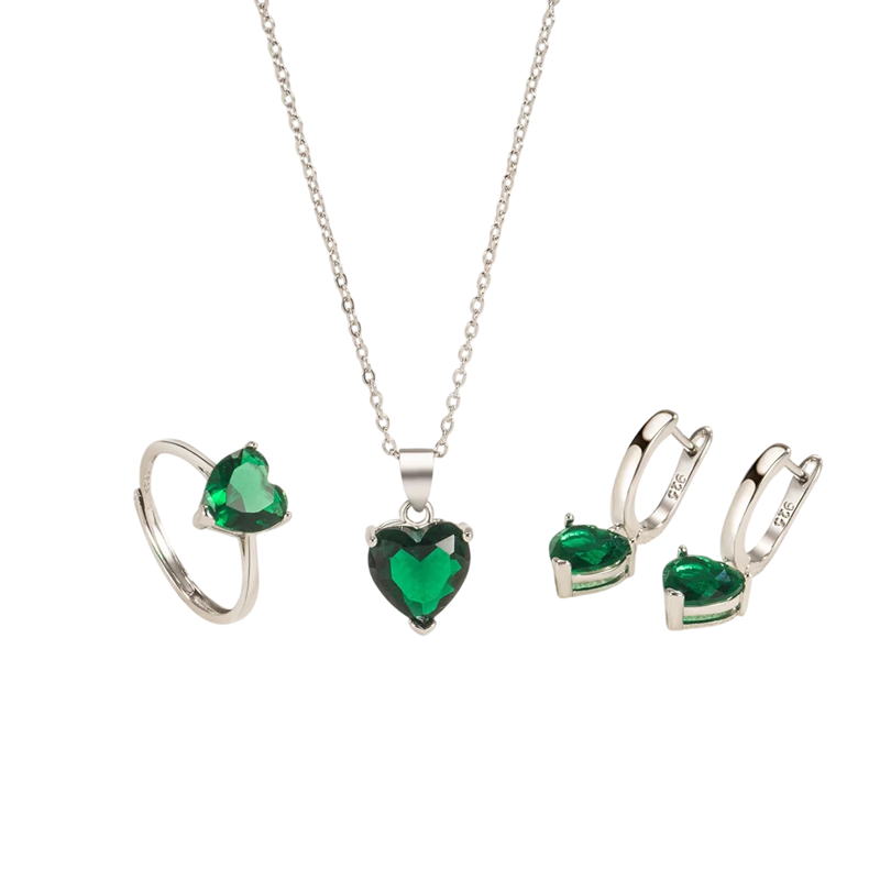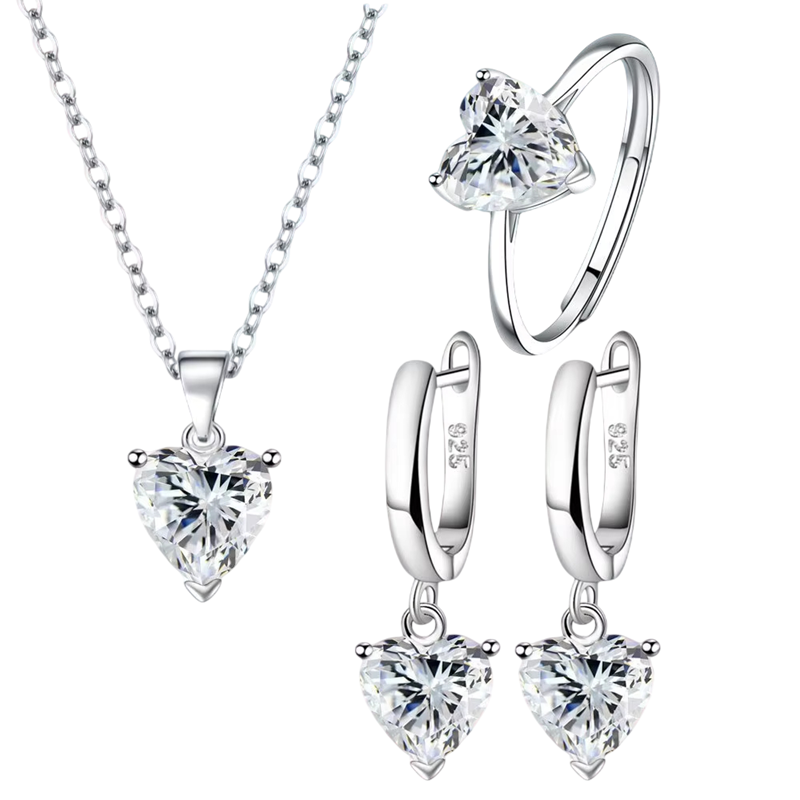 Háromrészes romantikus ezüst ékszerszett 925 Szívmotívum Fülbevaló Gyűrű Nyaklánc Női ajándékcsomag
