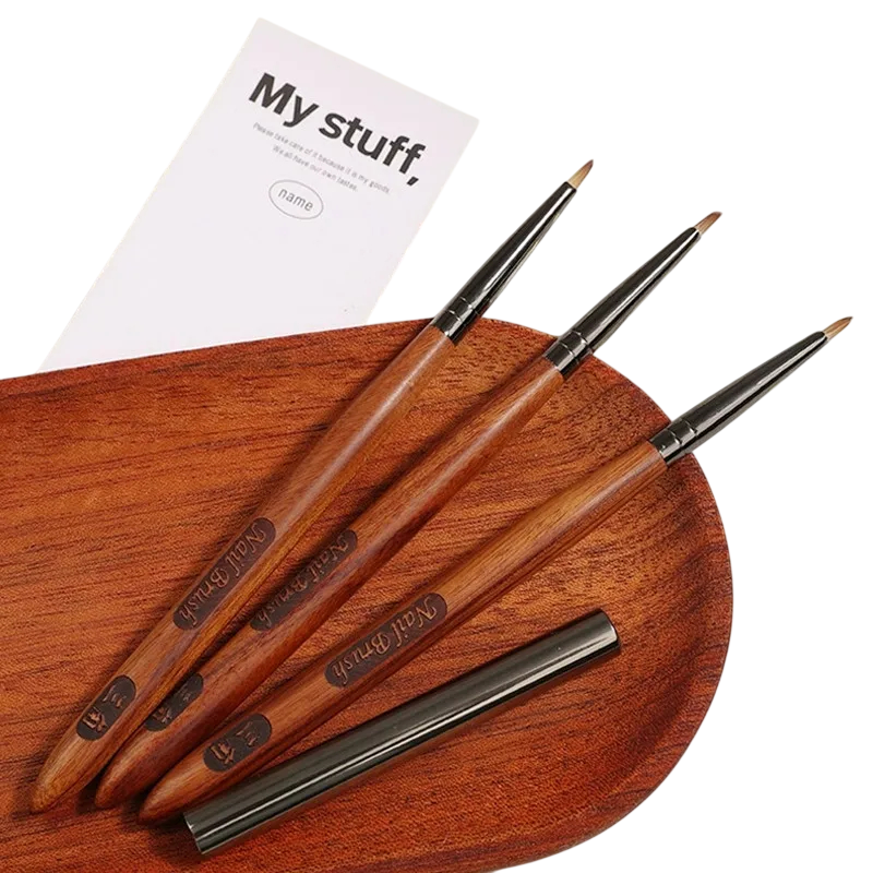 Háromszögletű körömkefe fedéllel Fa nyél Professzionális kozmetikai ecset 3D festéshez DIY manikűr körömdíszítéshez