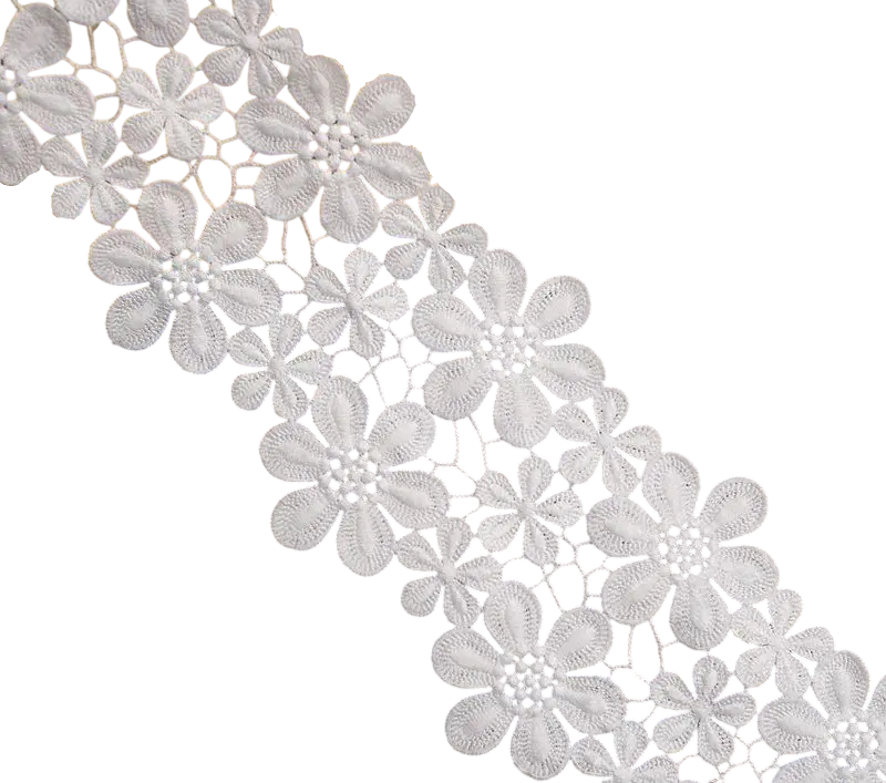 A hímzett csipke virágmintával elegáns dekoratív textília, amely kiválóan alkalmas varráshoz, díszítéshez és különféle kreatív projektekhez. A finom virágmintának köszönhetően nagyon stílusos és romantikus hatást kelt. Ez a típusú csipke ideális ruhák, divatkiegészítők vagy dekoratív textíliák díszítésére. Az anyag elegáns megjelenést kölcsönöz a termékeknek, és lehetővé teszi az eredeti textil dekorációk létrehozását.