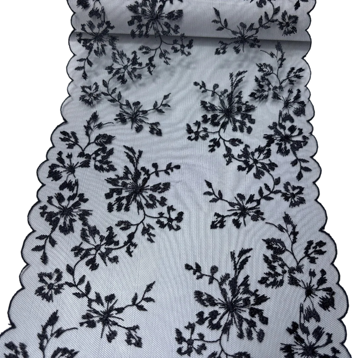 A csipkés háló kifinomult megjelenést és finom textúrát kölcsönöz a projektjeinek. Felhasználható esküvői dekorációk, jelmezek, díszítő alkalmazások készítésére, vagy lakásdekorációk átalakításához. A hímzett növényi minta elegáns megjelenést teremt, amely azonnal felhívja a figyelmet.