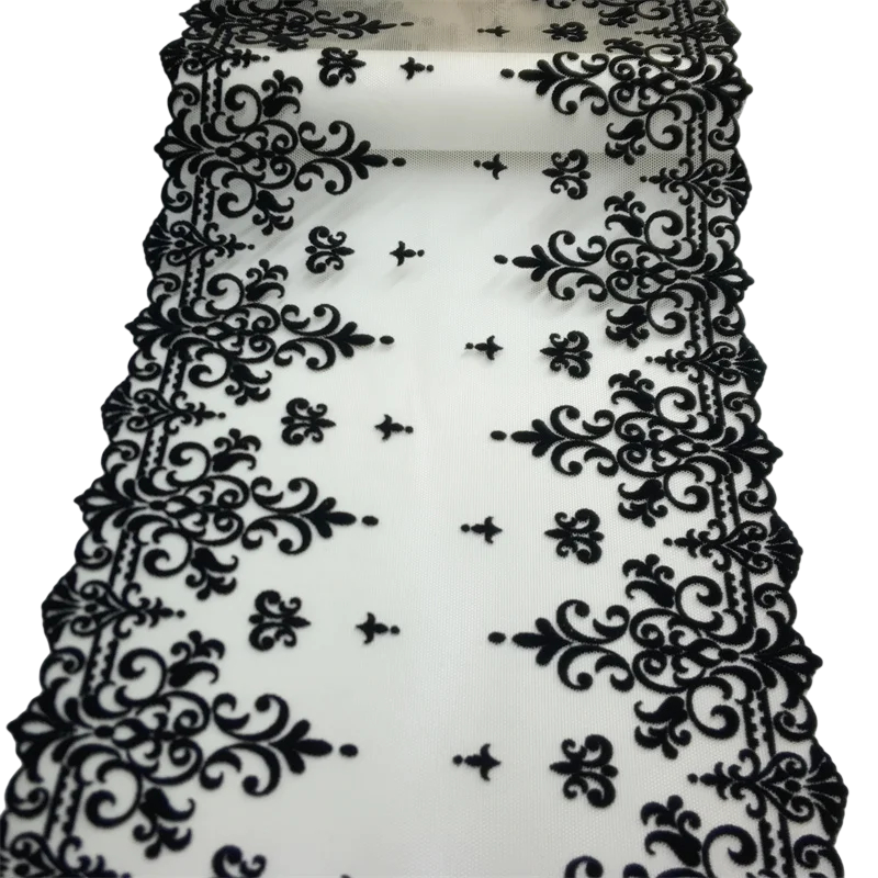 Hímzett csipkés háló 23 x 91 cm Fekete poliészter csipke növényi mintával Dekoratív anyag ruhák és dekorációk varrásához DIY
