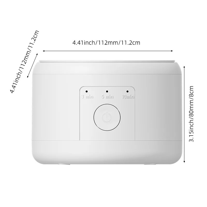 A 112 × 112 × 80 mm méretével a tisztító könnyen elfér bármilyen munkafelületen vagy polcon, és kompakt kialakítása kényelmes tárolást biztosít. Az eszköz úgy van tervezve, hogy biztonságos, környezetbarát és energiatakarékos legyen, miközben hatékony eredményeket nyújt rövid idő alatt.