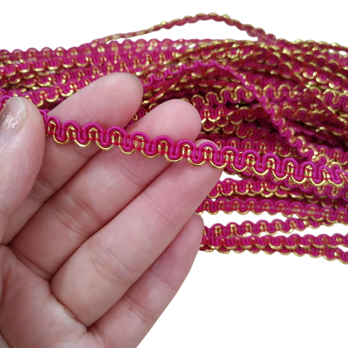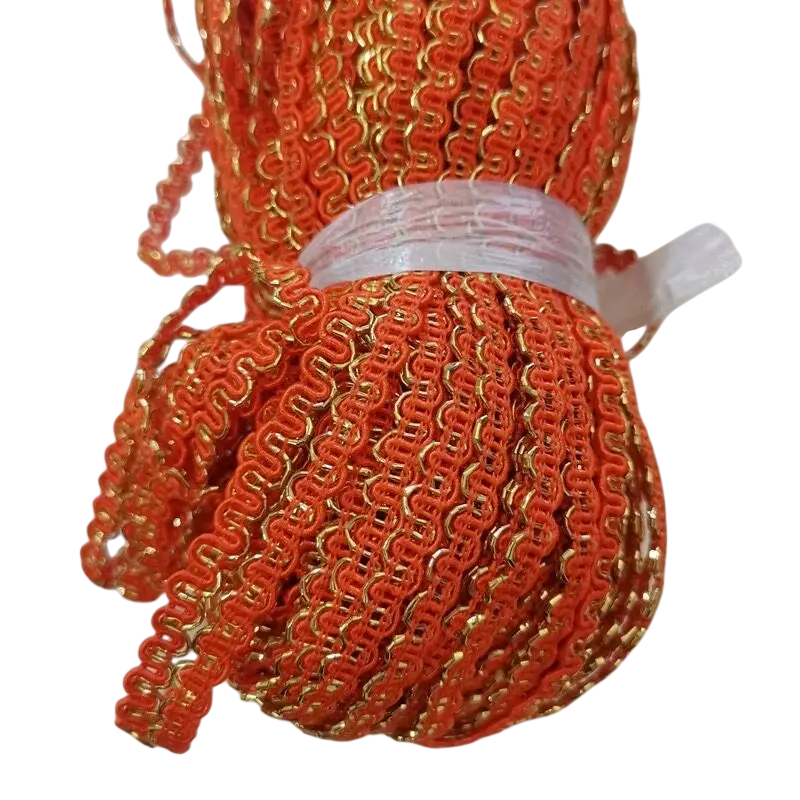 A hullámos dekoratív szalag praktikus textil kiegészítő, amely széles körben használható varrásnál, ruhák díszítésénél és kreatív alkotásnál. Finom hullámos dizájnjának köszönhetően elegáns dekoratív hatást kelt, amely felélénkítheti a különböző textil projekteket és dekorációkat. A keskeny kivitel lehetővé teszi a részletes díszítést ruhákon, kiegészítőkön, lakásdekoráción vagy kézműves termékeken. A szalag poliészterből készült, amely könnyű, tartós, és jól megtartja az alakját használat közben. Rugalmasságának köszönhetően könnyen varrható, ragasztható vagy díszítő elemként használható kreatív munkák során.