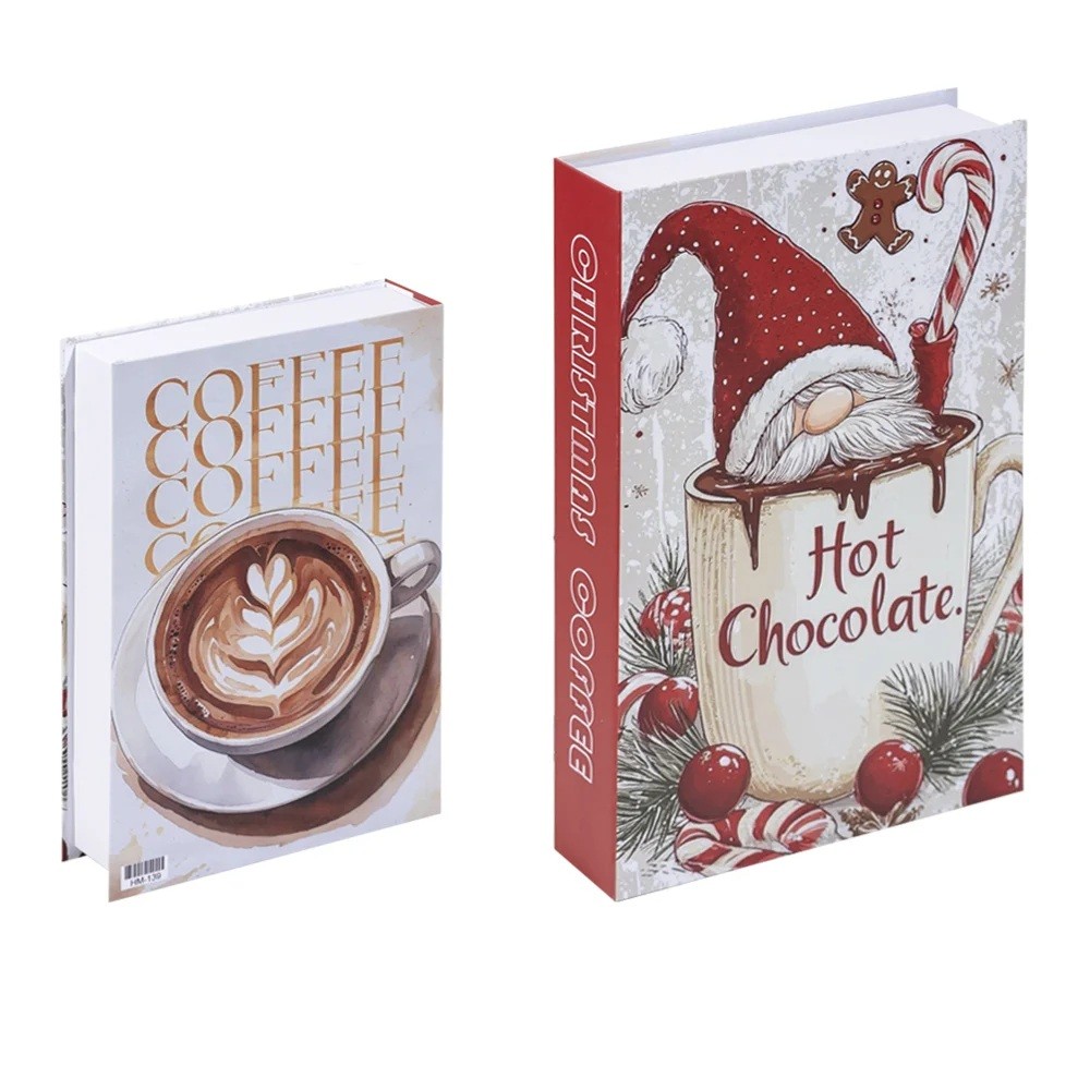 Stílusos belső tér dekoráció könyv formájában kellemes karácsonyi hangulatot hoz otthonába. Ez a dekoratív hamis könyv valósághű klasszikus könyv utánzatként van megtervezve, amely remekül kiegészíti a könyvtárat, polcot, komódot vagy dohányzóasztalt. A kávé és forró csokoládé téli motívumainak köszönhetően a dekoráció egyaránt otthonos és elegáns hatást kelt.