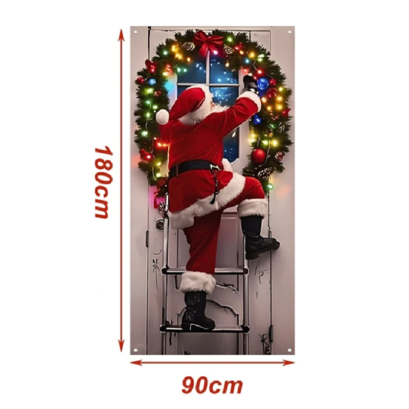 Karácsonyi függő banner 180 x 90 cm Poliészter Santa a létrán Ajtódísz Kültéri és beltéri karácsonyi dekoráció