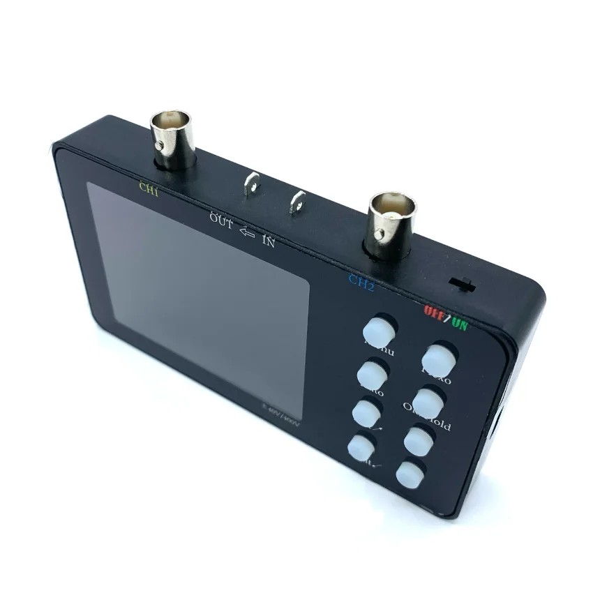 Főoldal Főoldal Hobbi és kert Mérőeszközök Kétcsatornás digitális kézi oszcilloszkóp PWM 50M 10MHz 2,5KSa/s 3,2" LCD 2500mAh akkumulátor elektronikai javításhoz és mérésekhez