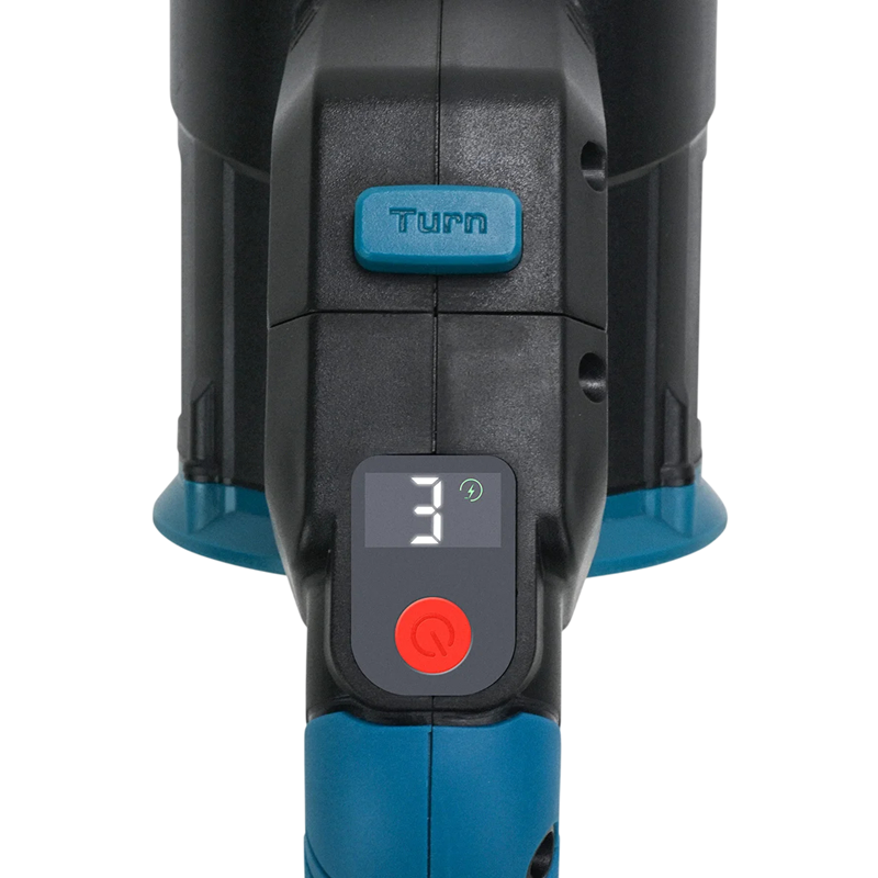 A fújó háromfokozatú szélsebesség-szabályozással van felszerelve, így a teljesítmény a konkrét munkához igazítható. A kialakítás lehetővé teszi a fogantyú szögének 180°-ig történő állítását, ami megkönnyíti a munkát különböző pozíciókban, és növeli a használat kényelmét.