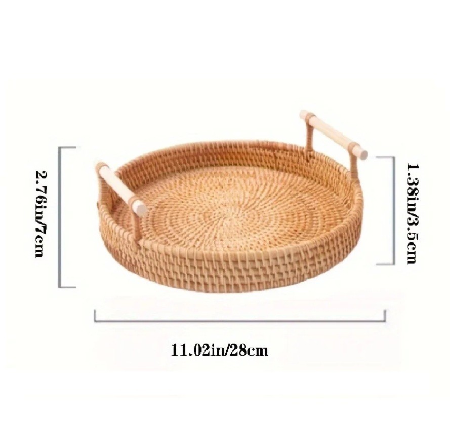 A 28 cm átmérőjű kézzel szőtt tálca univerzális segítő minden háztartásban, ahol a rend és esztétika egyaránt fontos. A nagyobb méretének köszönhetően több helyet kínál, mint a kisebb változatok, és mégis megőrzi a könnyed és légies megjelenést. Használható klasszikus tálcaként, de akár kosárként vagy rendszerezőként is a mindennapi apróságokhoz. A kerek forma harmonikus és természetes hatást kelt, így könnyen beilleszthető a modern és a hagyományos belső térbe. Az alacsony kivitel biztosítja, hogy a tárolt tárgyak mindig jól láthatóak legyenek.