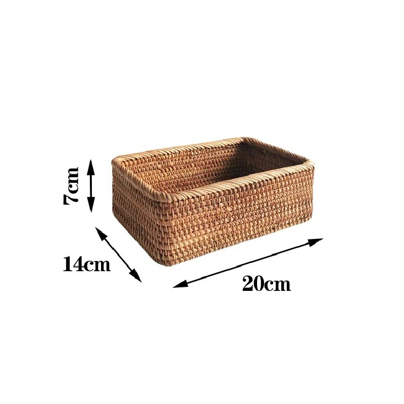 Ez a kézzel szőtt tároló kosár praktikus és átlátható megoldást kínál a kisebb tárgyak mindennapi rendszerezésére a háztartásban. A 20 x 14 x 7 cm-es kompakt méretének köszönhetően könnyen elfér a polcon, a fiókban vagy az íróasztalon anélkül, hogy feleslegesen sok helyet foglalna el. Ideális azok számára, akik szeretnék az apróságokat rendben tartani, miközben mindig kéznél vannak. Az egyszerű téglalap alak lehetővé teszi a könnyű kombinálást más tároló dobozokkal. A kosár modern és klasszikus belső terekhez is illik.