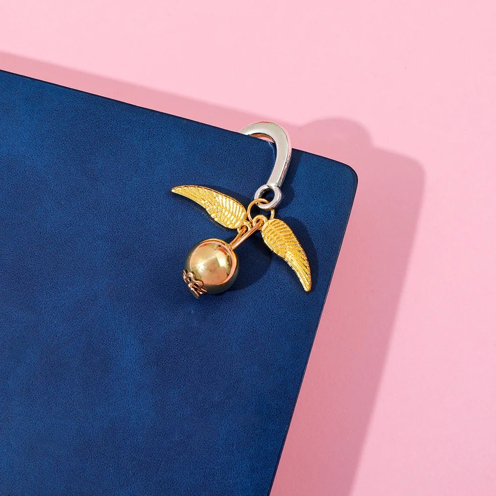 Kovová könyvjelző pírkóval és arany medállal Elegáns könyvjelző lánccal a mindennapi olvasáshoz Ez a fém könyvjelző pírka formájában ötvözi a finom dekoratív megjelenést a praktikus használattal a mindennapi olvasás során. A karcsú forma lehetővé teszi, hogy könnyen beilleszthető legyen a lapok közé anélkül, hogy azok megsérülnének, és emellett a vastagabb csípőben is megőrzi a helyét. A könyvjelző felülete részletesen kidolgozott, a pírka domború mintázatával, amely elegáns jelleget kölcsönöz az összképnek. Diszkrét dizájnja miatt jól illik a szépirodalomhoz, valamint naplókhoz vagy jegyzetfüzetekhez is. A könyvjelző könnyed és észrevétlen hatást kelt, mégis kifejező kiegészítője a könyvnek. A könyvjelző fém anyagból készült, amely biztosítja a szilárdságot és a hosszú élettartamot a mindennapi használat során. A felső részén egy lánc van rögzítve, amely apró arany medállal végződik, szárnyakkal és gömb alakú részlettel, amely díszítő elemként is szolgál, valamint praktikus segédeszközként a könyvjelző könnyű kihúzásához a könyvből. A könyvjelző teljes hossza 11,2 cm, szélessége körülbelül 1 cm, ami biztosítja a stabilitás és a finom megjelenés közötti kiegyensúlyozott arányt. A 11,8 g súly hozzájárul ahhoz, hogy a könyvjelző jól tartson a lapok között anélkül, hogy megterhelné a könyvet.