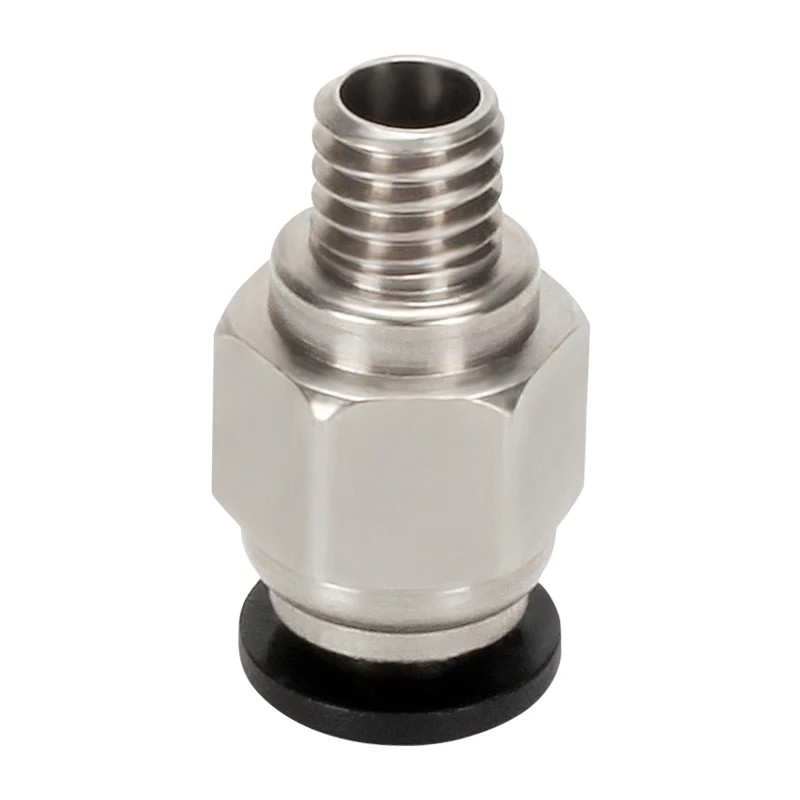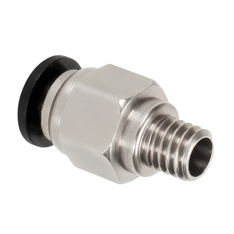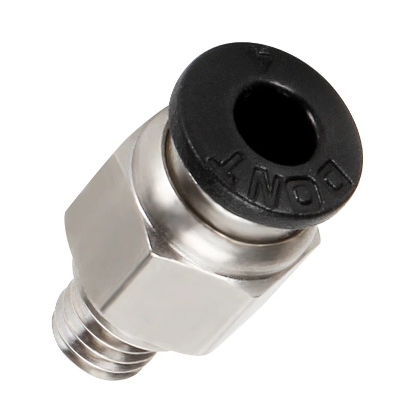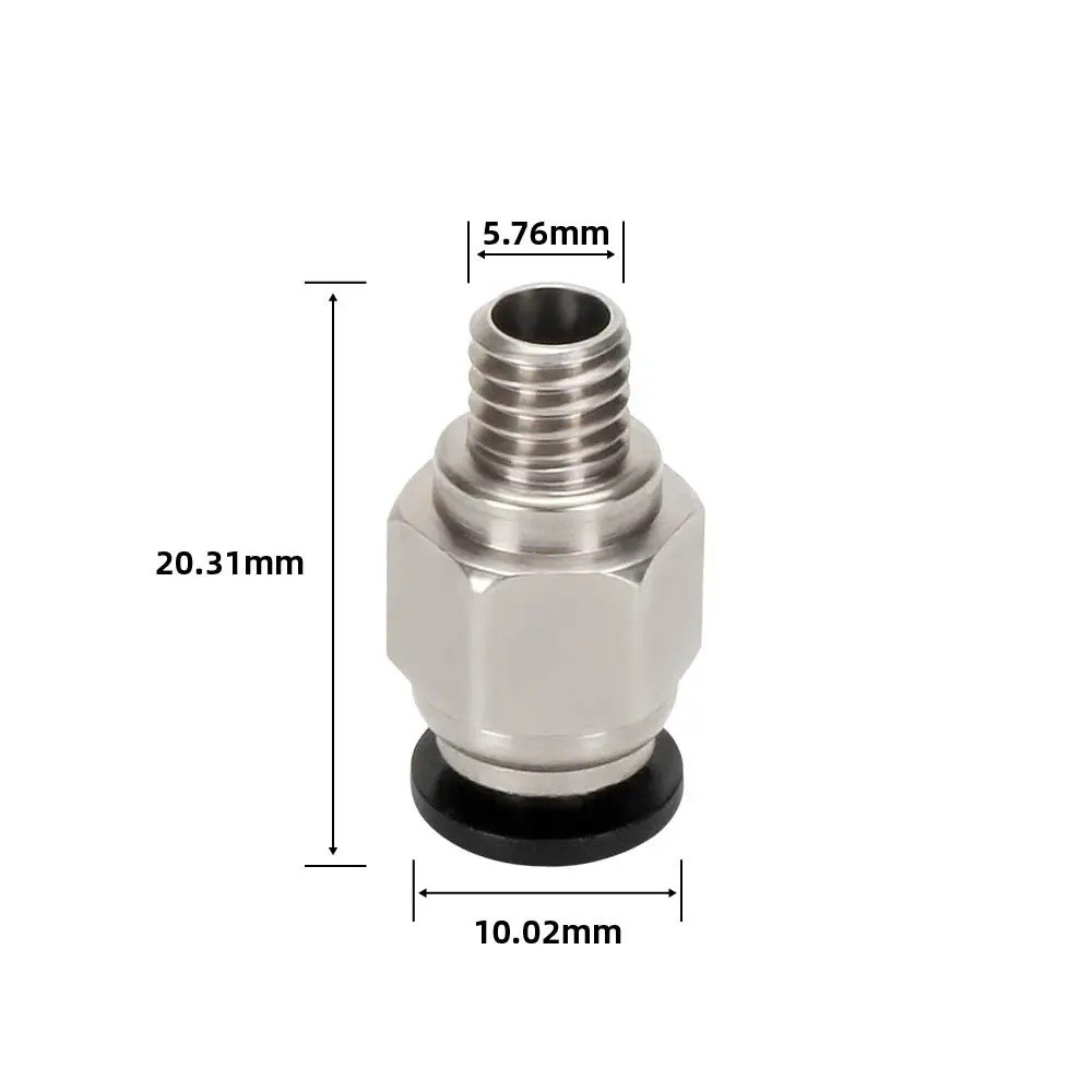 Ez a kovová pneumatikus csatlakozó 20,31 x 10,02 x 5,76 mm méretekkel biztonságos rögzítést biztosít a PTFE csőhöz, amelynek átmérője 4 mm, és a filament vezetésére szolgál a orsótól, táplálótól a nyomtatófejig. Az M6 menetes kialakításának köszönhetően a csatlakozó széleskörű 3D nyomtatókhoz alkalmas, különösen ott, ahol bowdenes táplálási módot használnak. A szilárd fém kivitel magas ellenállást, hosszú élettartamot és stabil rögzítést biztosít még hosszú távú nyomtatás során is.