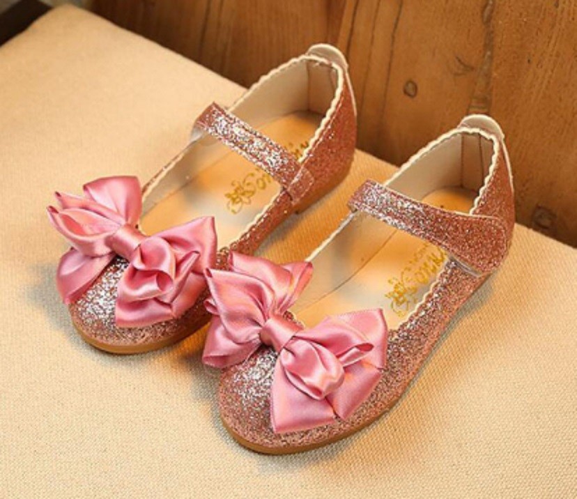 A balerina cipő csillognak és aranyos íjakkal vannak díszítve.