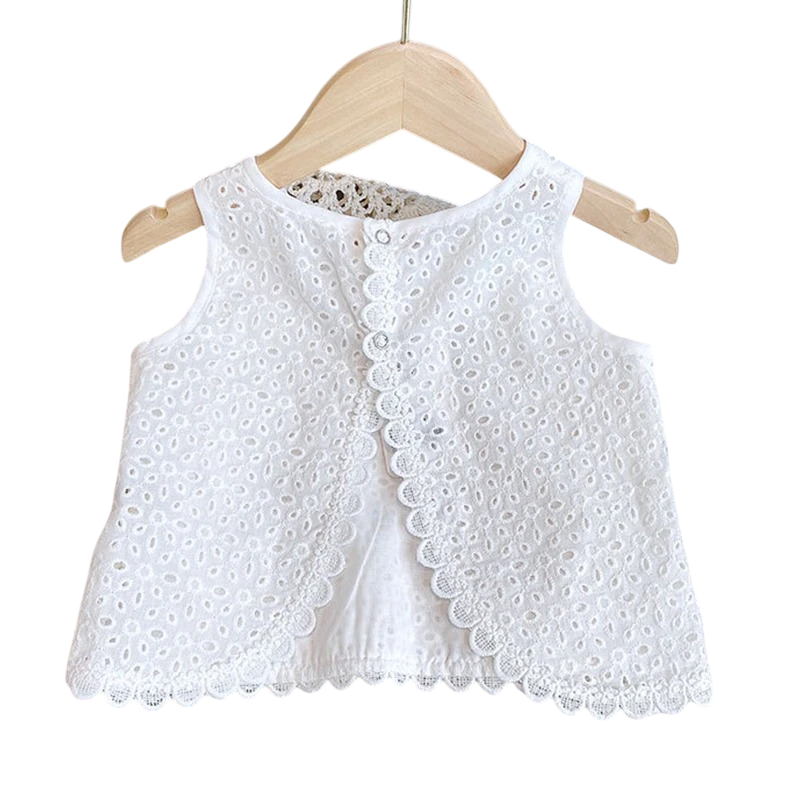 A top széles pántokkal rendelkezik, amelyek biztosítják a kényelmes viseletet anélkül, hogy lecsúsznának. O nyakkivágása diszkrét hatást kelt, és kisebb gyermekek számára is megfelelő. Praktikus részlet a gombos záródás a háton, amely megkönnyíti az öltözködést és levetkőzést. A fehér szoknya könnyedséget és légies érzést kölcsönöz az egész szettnek, így ideális melegebb időjárásra. A szoknya szabása lehetővé teszi a szabad mozgást járás és játék közben.