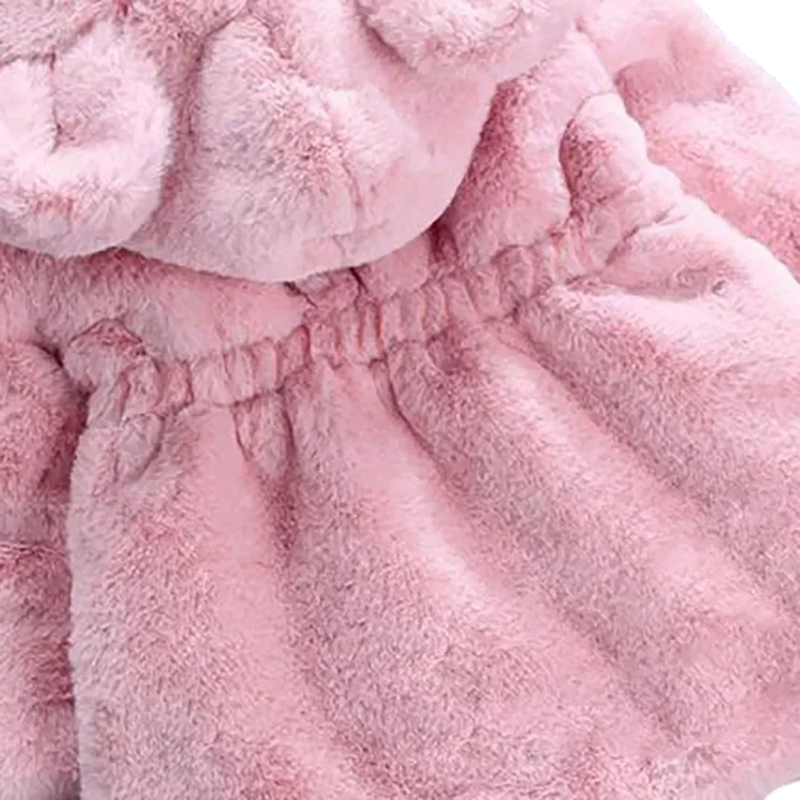 Lány téli dzseki cipzárral, füles kapucnival és zsebekkel, Meleg puha bundából készült, Kényelmes meleg téli ruházat kislányoknak