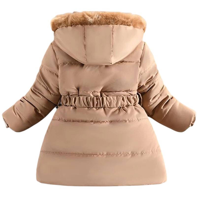 Stílusos lány téli kabát szőrmés kapucnival, pomponos zsebekkel és dupla záródással. A meleg pamut és poliészter kényelmet biztosít a hideg időjárásban is. Teljes leírás