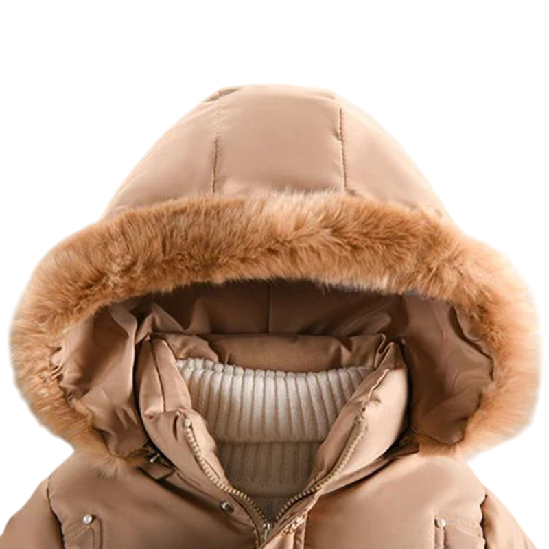 A pamut és poliészter kombinációja révén a kabát magas hőkomfortot biztosít, amelyet minden gyermek értékelni fog kültéri tevékenységek vagy a napi viselet során. A pomponos zsebek kiemelik a kabát aranyos karakterét, miközben praktikus felhasználást kínálnak apróságok tárolására vagy a kezek melegen tartására. A szőrmés kapucni nemcsak esztétikai kiegészítő, hanem funkcionális védelem is a téli hatások ellen. A dupla záródás megbízható zárást garantál, és hozzájárul a jobb szigeteléshez a hideg ellen. Ez a kabát ideális választás a szülők számára, akik stílust, funkcionalitást és kényelmet keresnek egy elegáns téli darabban.