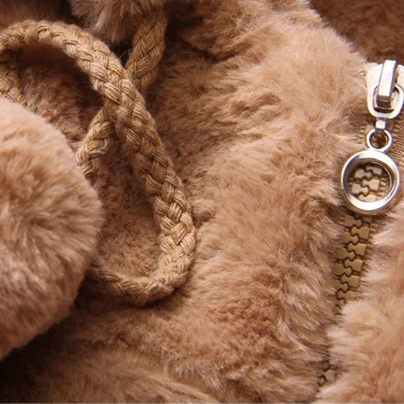 Lányka plüss téli kabát Cipzáras záródás Medvés zsebek Kapucni szőrme fülekkel Medve és nyúl képe a háton Pamut Poliészter