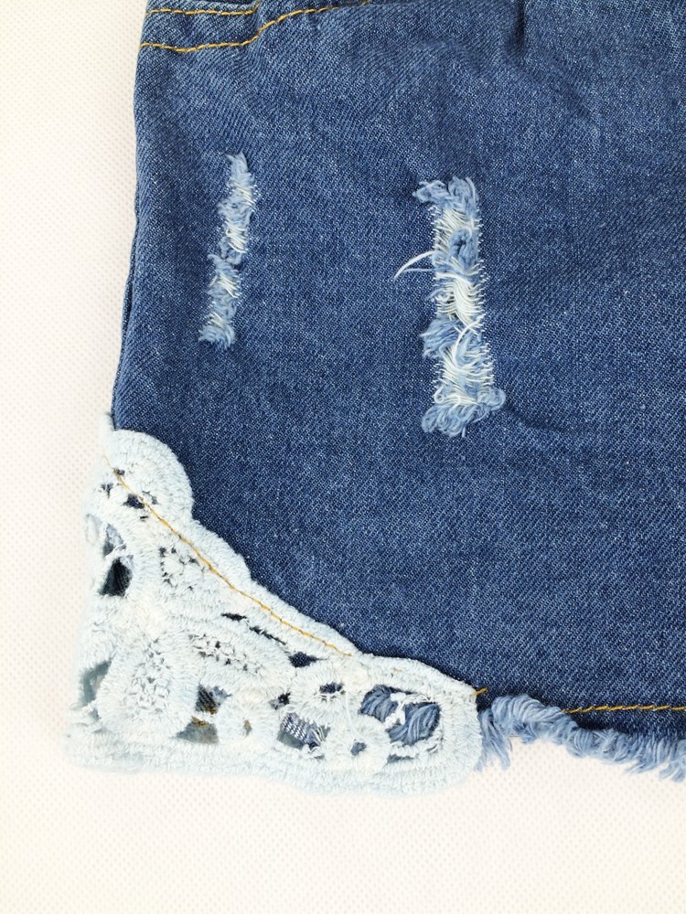 Lányka rövidnadrág csipkével egy nagyon aranyos változata a farmer rövidnadrágoknak.