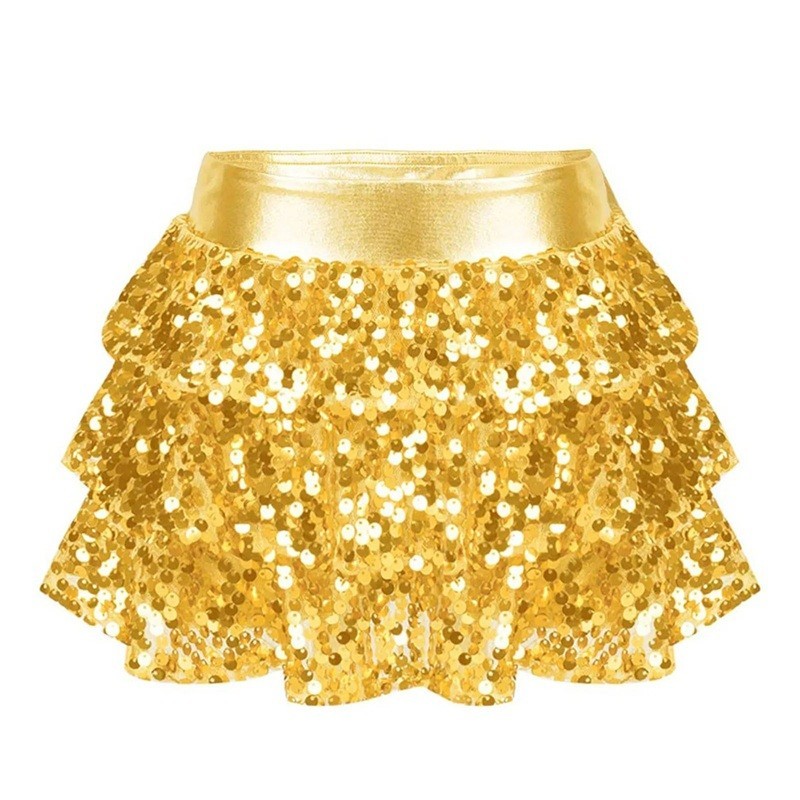 Csillogó szoknya flitterekkel és ráncolással, térd feletti hosszúság, könnyű poliészter, ünnepségekre és fellépésekre is alkalmas. Teljes leírás