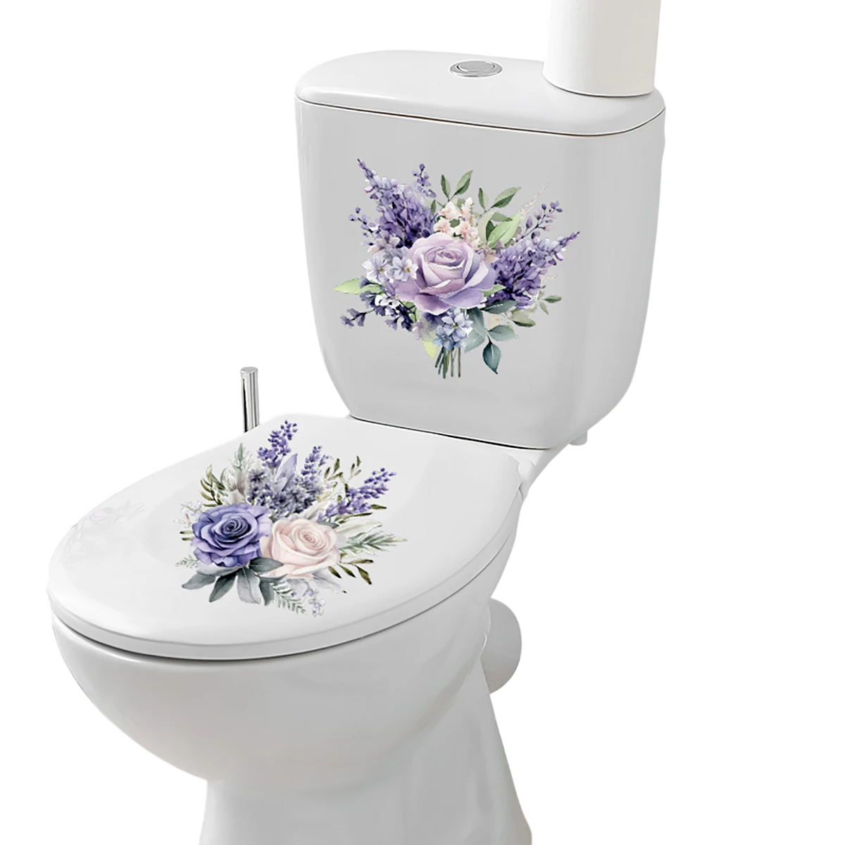Lila virágos fürdőszobai matricák 30x30 cm PVC vízálló dekoráció 2 db virágos design WC-hez és fürdőszobához Ezek a