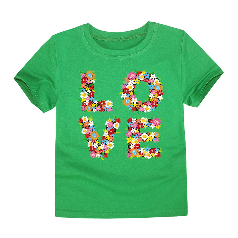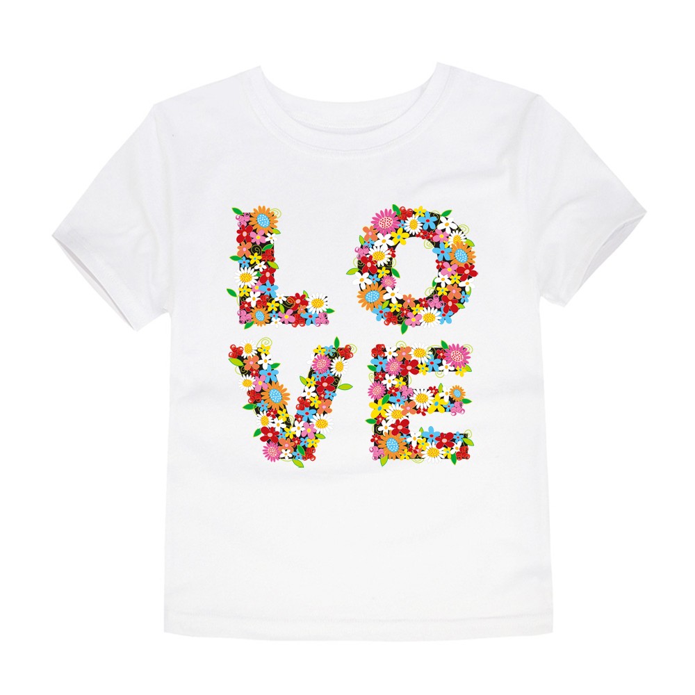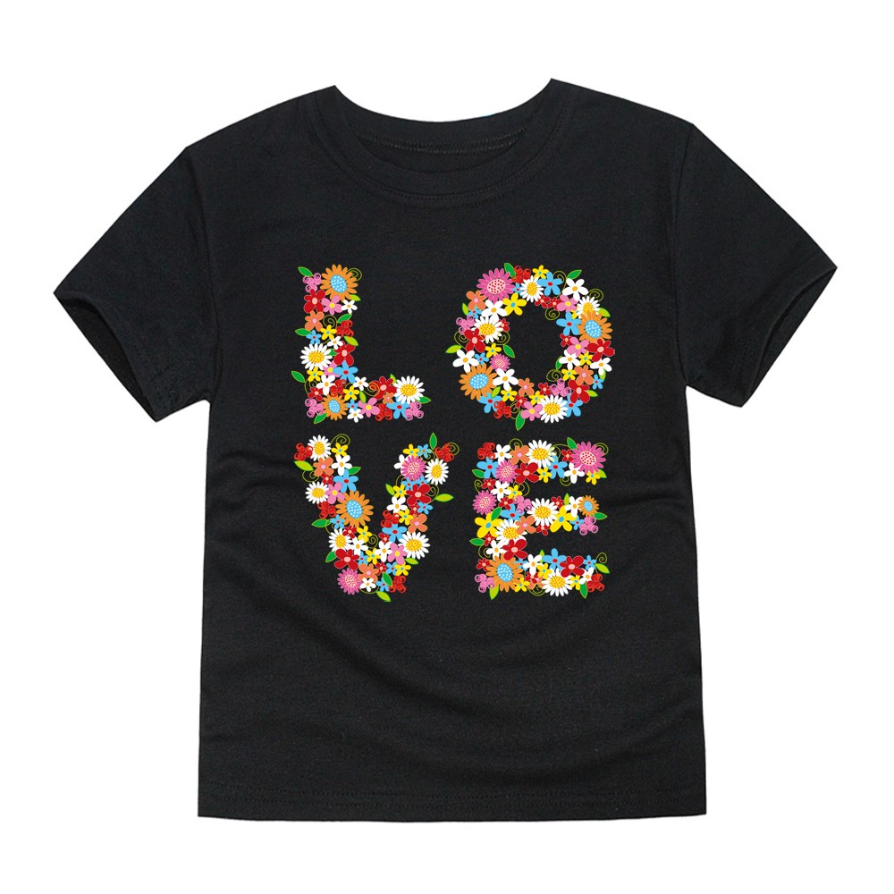 Gyönyörű lány póló LOVE virágokkal felirattal.