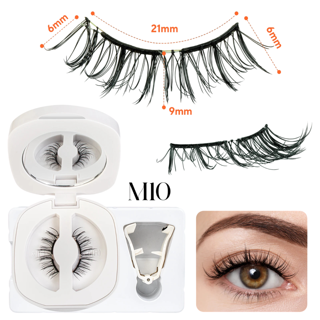 A M10 mágneses műszempillák ideális választás a nők számára, akik a finom és természetes szemkiemelést részesítik előnyben. A rövidebb hosszúság miatt nagyon diszkrét hatást keltenek, és alkalmasak a mindennapi viselésre munkahelyre, iskolába és hétköznapi alkalmakra. A modern mágneses rendszer lehetővé teszi a gyors alkalmazást ragasztó használata nélkül, és minimalizálja a érzékeny szemkörnyék irritációját. A csomag része egy praktikus applikátor a pontos és kényelmes felhelyezéshez.