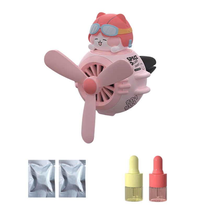 Ez a rózsaszín macskával és propellerrel ellátott autós szellőzőklipsz egy eredeti kiegészítő, amely ötvözi a dizájnt, a praktikusságot és az aromaterápia funkcióját. A kedves rajzfilm motívumnak köszönhetően vidám és játékos megjelenést kölcsönöz autója belső terének, míg a beépített propeller segít eloszlatni a kellemes illatot az egész térben. Ez a kis részlet képes átalakítani a mindennapi utazást kellemesebb élménnyé.