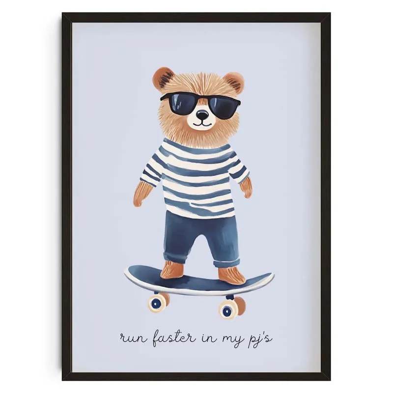Ez a plakát egyszerű módja annak, hogy egy üres falat kifejező vizuális elemmel egészítsünk ki. A nagyobb formátum miatt fő dekorációként is funkcionálhat a helyiségben. A skateboardos medve illusztrációja laza hatást kelt, és jól illeszkedik a gyerekszobákba és a modern stílusú belső terekbe. A vászon mint alapanyag természetes megjelenést biztosít fények nélkül. A plakát könnyen kombinálható más dekorációkkal, így egy átfogó megjelenést hozhatunk létre a térben.