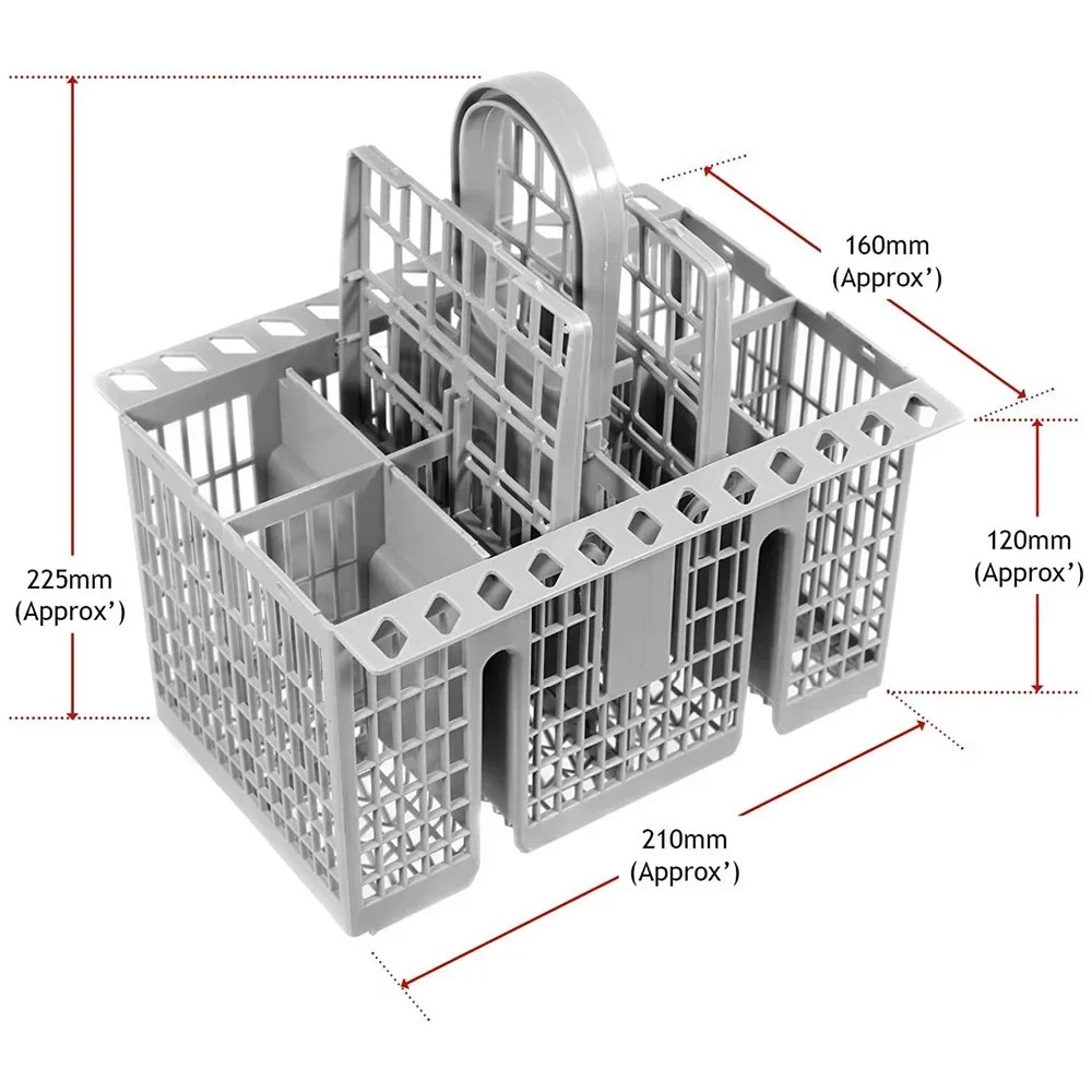 25 x 13 x 12 cm méretének köszönhetően elegendő helyet biztosít az evőeszközök és apró konyhai eszközök biztonságos tárolására a mosási ciklus során. Az erős, tartós műanyag konstrukció hosszú élettartamot és stabilitást biztosít még teljes terhelés mellett is. A kosár könnyen behelyezhető a mosogatógép alsó kosarába. A kiváló kidolgozás lehetővé teszi a mindennapi használatot deformáció nélkül. Ez a tároló kosár segít az evőeszközök elkülönítésében, ami hatékonyabb mosást és jobb eredményeket biztosít. A nyitott rácsos szerkezet lehetővé teszi a víz és a tisztítószer szabad áramlását. Kiválóan alkalmas a sérült vagy elhasználódott eredeti alkatrész helyettesítésére.