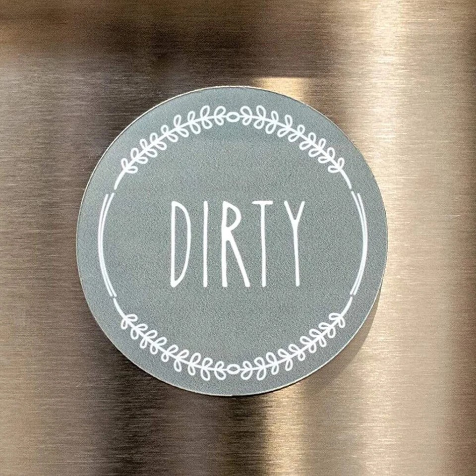 Mosogatógép mágnesek 9 x 9 cm "CLEAN" és "DIRTY" feliratokkal Szürke és fehér mágnesek a mosogatógép állapotának jelölésére