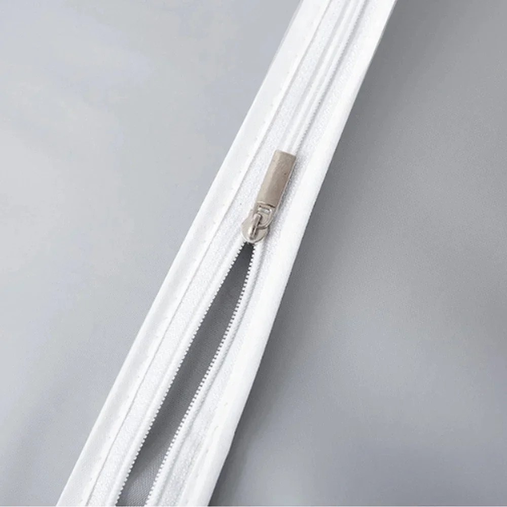 A huzat anyaga PEVA és 100% poliészter kombinációja, amely praktikus, mosható és kopásálló. A huzat felületét egyszerűen csak egy nedves ronggyal kell áttörölni, és pillanatok alatt újra tiszta lesz. A huzat nem szívja magába a szagokat, nem gyűrődik, és idővel nem sárgul be. A fehér-átlátszó anyag struktúrája könnyed, modern hatást kelt, és könnyen illeszkedik a különböző belsőépítészeti stílusokhoz anélkül, hogy zavaró lenne.