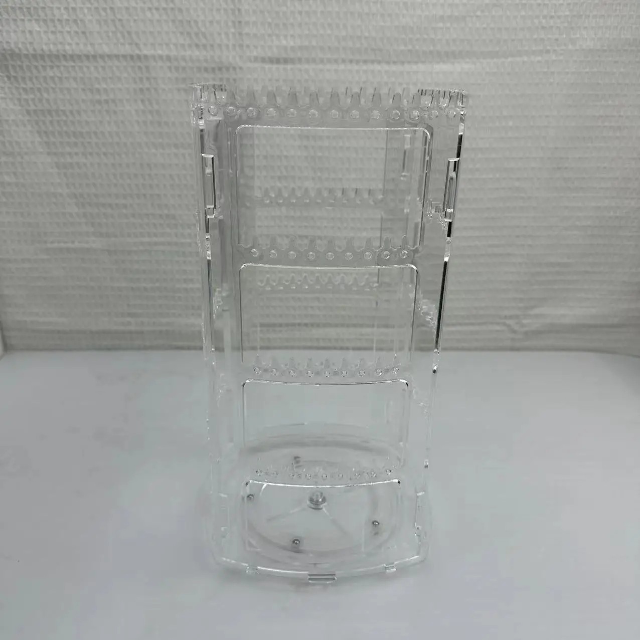 Forgatható asztali organizáló a fülbevalók áttekinthető kiállításához, több szinttel és átlátszó konstrukcióval. Teljes leírás