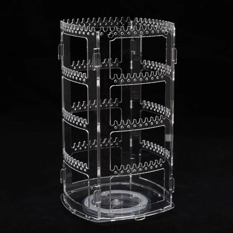 Az állvány lehetővé teszi a nagyobb mennyiségű fülbevaló egy helyen való rendezését. A forgatható konstrukciónak köszönhetően az állvány könnyen forgatható, és az ékszerek különböző oldalról választhatók ki. A stabil alap segít az állványt szilárdan tartani az asztalon a mindennapi használat során. Az átlátszó anyag kiemeli magukat az ékszereket. A konstrukció alkalmas otthoni kiállításra vagy ékszerek rendezésére.
